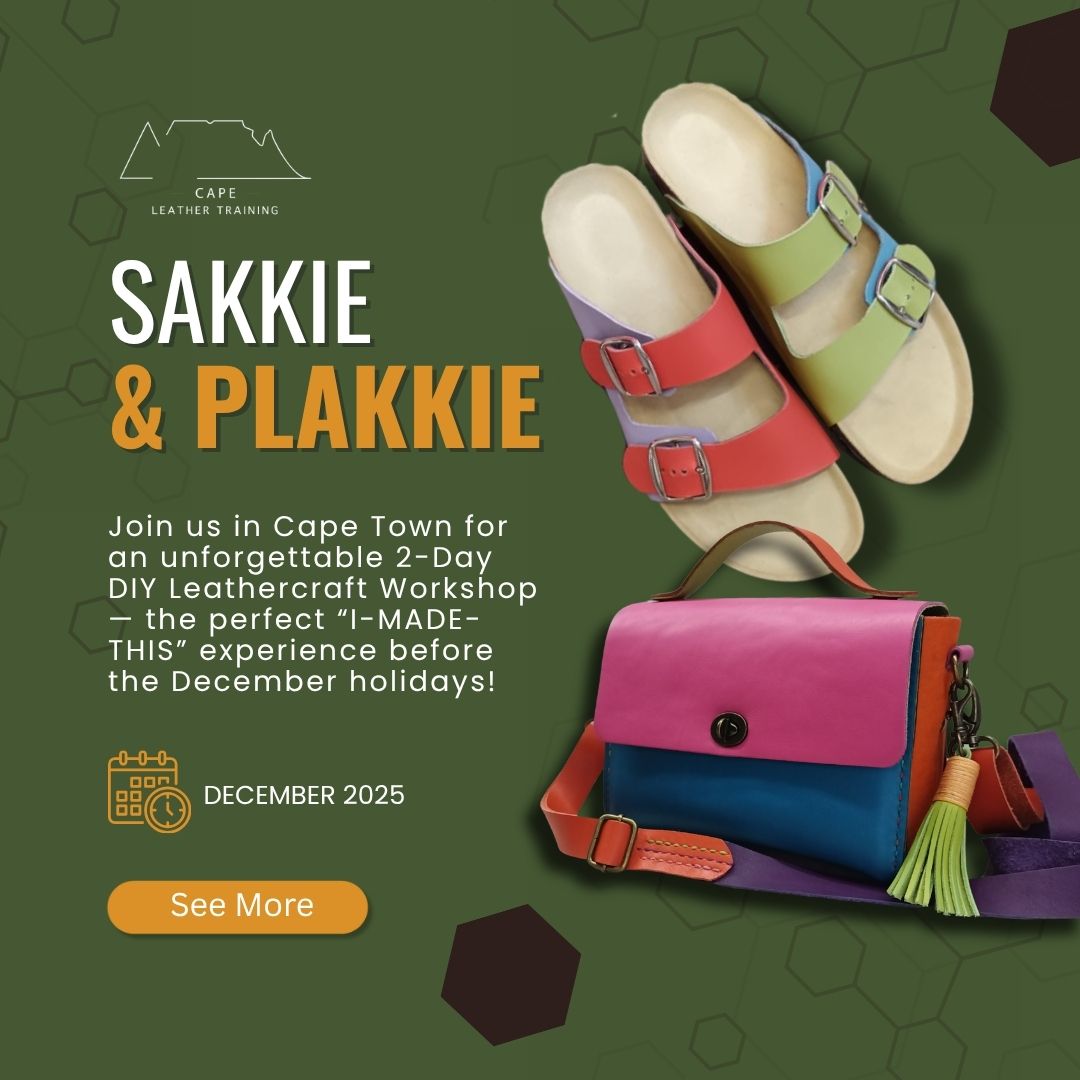 Join us in Cape Town for an unforgettable 2-Day DIY Leathercraft Workshop— the perfect “I-MADE-THIS” experience before the December holidays! Over two inspiring days, you’ll create your very own hand-stitched leather bag and a pair of Birkenstock-style sandals, guided by the expert team from Cape Leather Training.